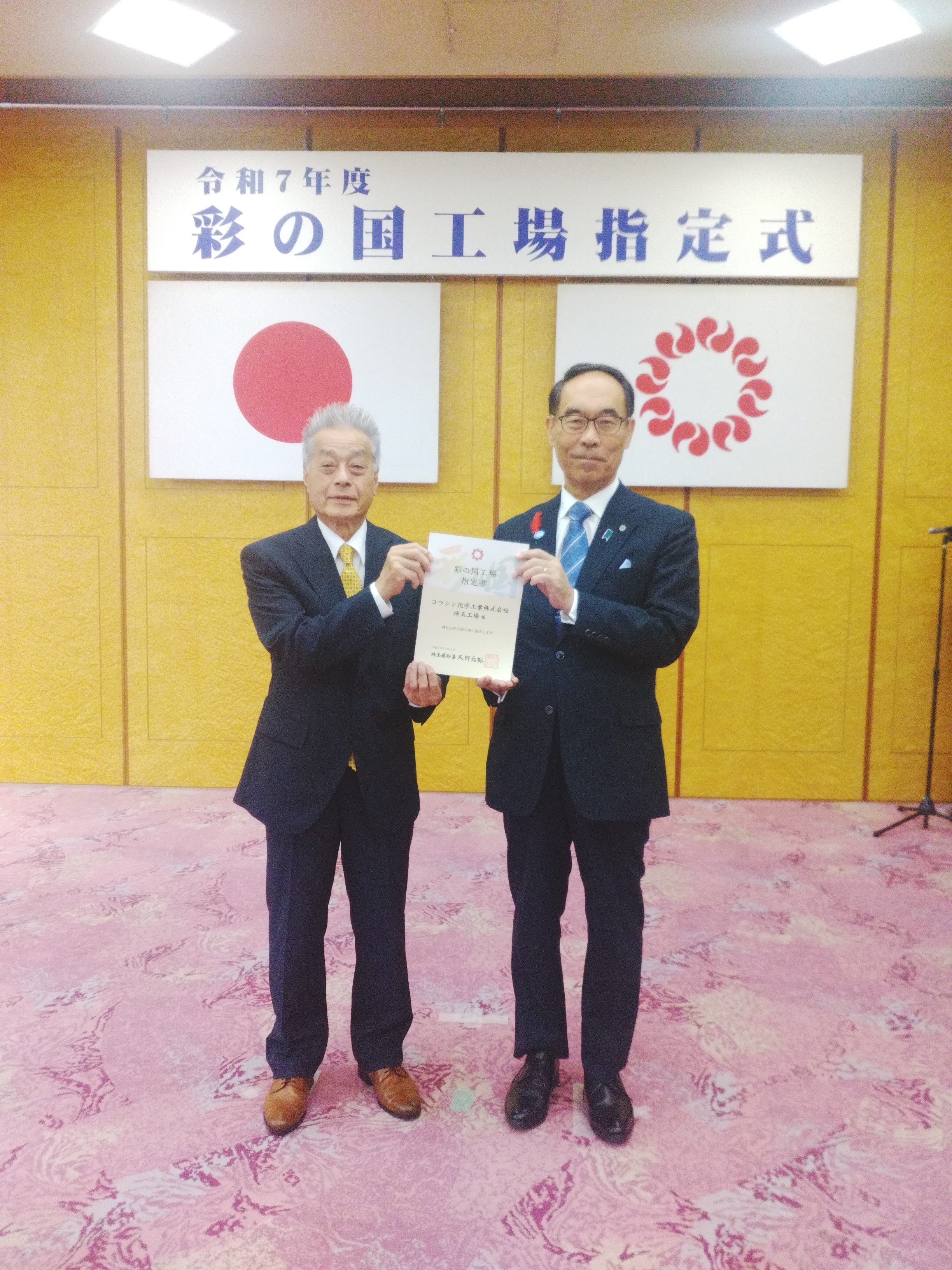 2025年10月、コウシン化学工業株式会社は、埼玉県 大野元裕知事より「彩の国工場」の指定を受けました。